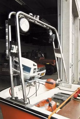 Högpolerat rostfritt stål AISI 316 och justerbar bredd. Monteras med vippbeslag så att targabågen kan fällas ner för att ev. köras under en bro. 7 monteringsplattor och 4 Ø25 mm rör för ev. montering av antenner och lanternor.