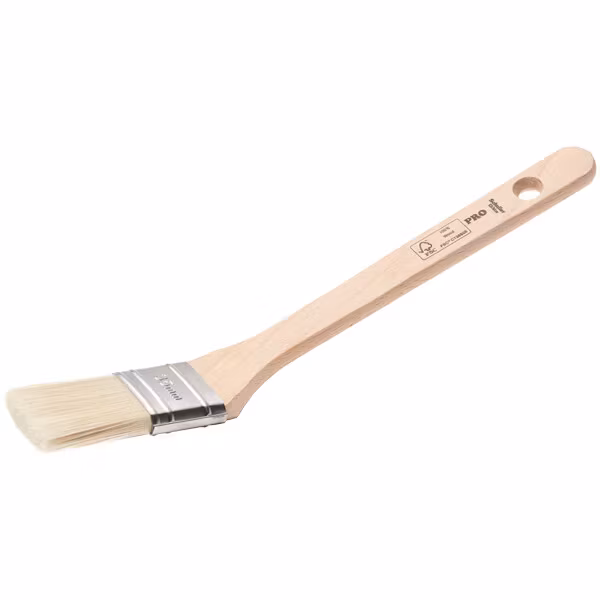 Mixborst av natur och syntetfibrer. Detta garanterar förstklassiga resultat för de flesta typer av målningsuppgifter. Rostfritt stålband, hellimmat, obehandlat skaft av FSC-certifierat bokträ