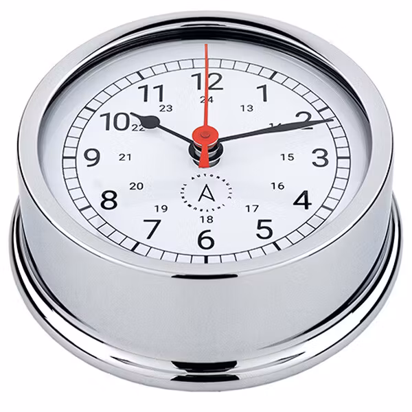 Autonautic Skeppsur R95C är utvecklat för sjöfarare som uppskattar klassisk design kombinerad med modern funktionalitet. Som en del av Atlantic 95-serien har detta ur en bas på 95 mm och en vit urtavla, vilket ger ett elegant och tidlöst utseende i alla marina miljöer. Den förkromade mässingskonstruktionen ger både hållbarhet och stil, medan mineralglaset skyddar mot repor och slitage.