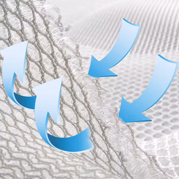 Specialutvecklat 3D-airmesh-underlag som ökar ventilationen mellan dyna och underlag. Bärförmågan på 1,8 ton/m2 (kpa 16 ISO 3386-1) säkerställer ventilation under belastning.
