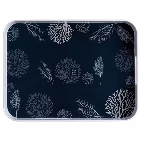 Brickan med 2 handtag från Living-kollektionen är lätt och har en halkfri botten och höga sidor så att ingenting glider av brickan.