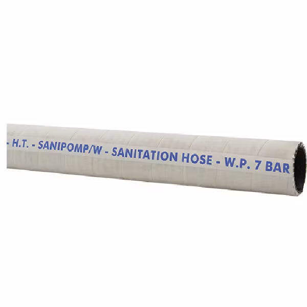 Sanipomp/W är en standard toalettslang som är gastät och med stålarmering och nylonförstärkning.