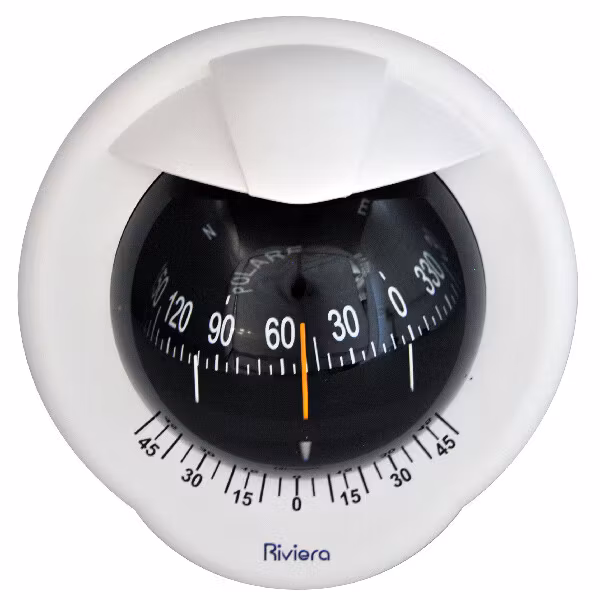 Polar skottmonterade kompasser kan användas för motor- och segelbåtar på 6-12 meter beroende på val av kompasstorlek. · Belysning: 12V (kan fås med 24V) · Läsning: Frontavläsning · Gradering av kompassrosen: 5° · Antireflexskärm · SOLAS godkänd MED 2014/90/EU Riviera kompasser Riviera i Italien har designat och tillverkat magnetiska kompasser och nautiska instrument av hög kvalitet sedan 1976. De har utvecklat pålitliga och tekniskt uppdaterade produkter efter den maritima traditionen av enkelhet och funktionalitet. Kompasserna är därför lämpliga för både fritids- och kommersiellt bruk, oavsett om de används offshore eller för kustsegling. Riviera har erhållit europeiska certifieringar och godkännanden för både produkter och kvalitetssystem. Handgjord italiensk kvalitet från Genua, då är du på rätt kurs.