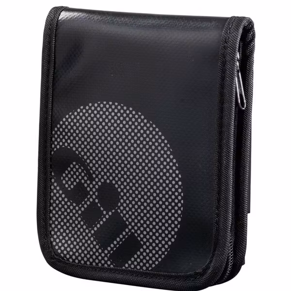 Svart 2-vingad plånbok med dragkedja från Gill i vattentätt nylonmaterial. Har 4 kreditkortsfickor.