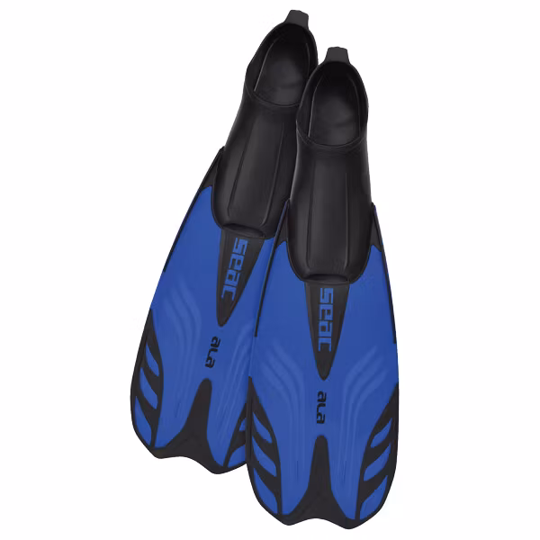 Seac Ala simfenorna är konstruerade som en lätt och effektiv helfotsfena som kombinerar flexibilitet, låg vikt och hög framdrift för snorkling. Fenbladet är tillverkat i en dubbeltmaterialkonstruktion som ökar effektiviteten i varje benspark och säkerställer tydlig framdrift utan onödig energiförbrukning. Den reducerade vikten gör modellen väl lämpad för längre perioder i vattnet, samtidigt som belastningen på fot och fotled minimeras. Fotfickan är tillverkad i mjukt termoplastiskt gummi som omsluter foten säkert och bekvämt utan att klämma, och den öppna tåsektionen ger naturlig rörelsefrihet. På undersidan finns en räfflad halksäker struktur som ger bra grepp på våta och hala ytor, särskilt vid in- och utstigning ur vattnet. Fenbladets böjlighet ger en jämn och kontrollerad rörelse genom vattnet, vilket optimerar användarens utbyte av varje spark. Seac Ala är utformad för användare som söker en tekniskt genomarbetad fena där stabilitet, låg vikt och effektiv framdrift prioriteras.